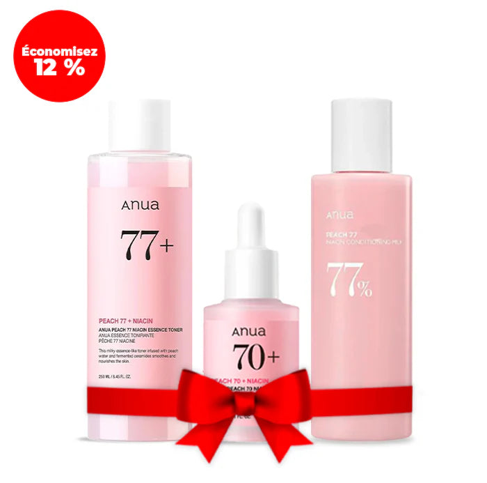 Offrez à votre peau un cocktail de fraîcheur et d'éclat avec le Peach Pack d’ANUA. Formulé à base d’extraits de pêche et de niacinamide, ce trio aide à unifier le teint, réduire les taches pigmentaires, et apporter de l’éclat sans agresser la peau.