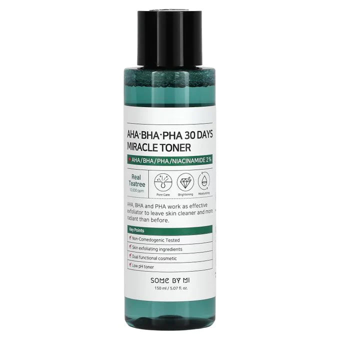 Le Tonique Miracle 30 Jours aux AHA, BHA et PHA de Some By Mi est un produit qui peut accomplir des merveilles pour votre peau en seulement 30 jours ! Idéal pour les peaux sensibles et sujettes à l’acné, ce tonique contient une combinaison puissante d’ingrédients exfoliants et apaisants.